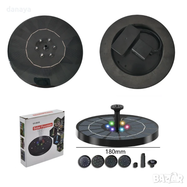 Соларен фонтан с LED светлини UV8039 – декоративен фонтан за градина, басейн, езерце