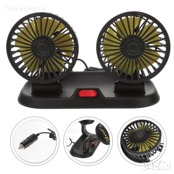 двоен вентилатор за кола, автомобилен вентилатор PG375, 12V вентилатор, вентилатор за запалка, вентилатор с 2 глави, охладител за кола, вентилатор за табло, car fan 12V, double car fan PG375, ventilator za kola 12V, двоен охладител автомобил, truck fan, camper fan 12V, suv fan 12V