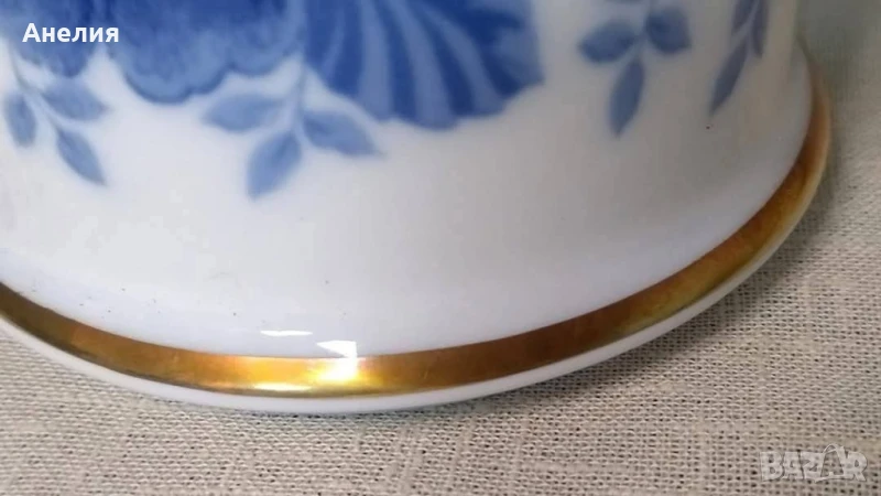 Порцелан в нюанс на бяло, с големите красиви цветя, изрисувани с кобалт.