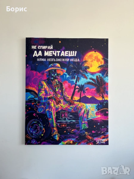 Тази канава ще внесе естетика, цвят и стил в пространството, като същевременно изразява индивидуалност и изискан вкус. Перфектен избор за ценители на изкуството, търсещи нещо различно и оригинално.