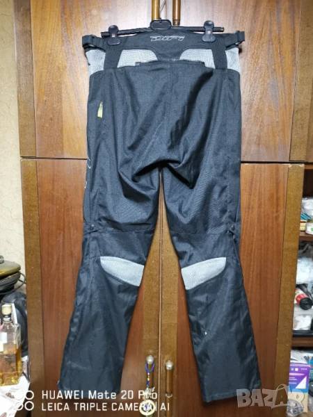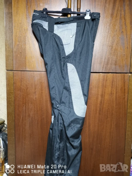 Черни мото панталони Difi в размер L. Използвани са, но в добро състояние. Множество реглажи. Имат меки протектори вградени. Текстилен. Талия 46...47...тоест 92...94 см. Дължина 110 см. Много запазен с изключение на малко стопено... Около 5 мм в диаметър, по малко от нокът. Снимано е. На десния крачол отзад. За повече питайте. Черно и сиво.