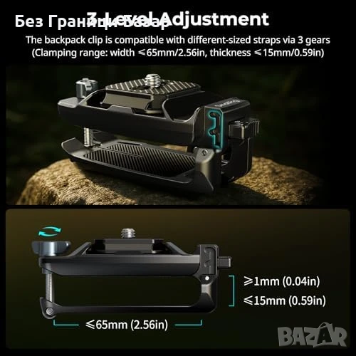 3-степенно регулиране на захващането – пасва на презрамки до 65 мм ширина и 15 мм дебелина