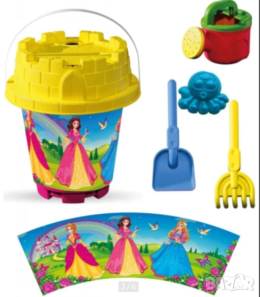 Тип продукт: Кофичка за пясък;Комплектът Кофа за пясък – е перфектното забавление за плажа, двора или пясъчника. Създаден за безброй часове творческа игра, той включва всичко необходимо, за да се потопи детето в света на фантазията и строителството с пясък. Подходящ е както за момчета, така и за момичета над 3-годишна възраст.Този комплект съдържа цели 5 практични аксесоара: лейка, сито, лопатка, гребло и формичка, които са подредени в мрежеста опаковка – удобна за съхранение и пренасянеКомплектът се предлага в шест цветни и весели варианта:Принцеси, Барби с корона, Пони, Коли с очи, Джипове, Животни.Размери на кофата: 19 см (диаметър) x 23 см (височина);Размери на опаковката: 19 см x 35 см.