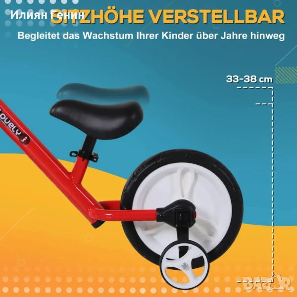 HOMCOM Детски балансиращ велосипед, 2 в 1, с помощни колела и педали, 2-5 години, Регулируема височина на седалката, 85 x Ш36 x В54 см - 90.00лв.