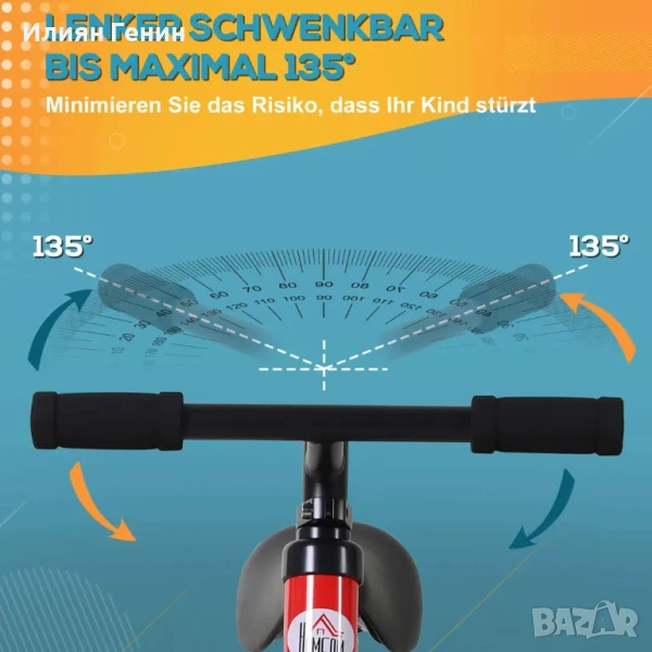 Дизайн 4 в 1: Помощните колела и педали могат лесно да се монтират или демонтират според нуждите. Лесно превключване между балансиращ велоергометър, спомагателен балансиращ велоергометър, велосипед и триколка.
