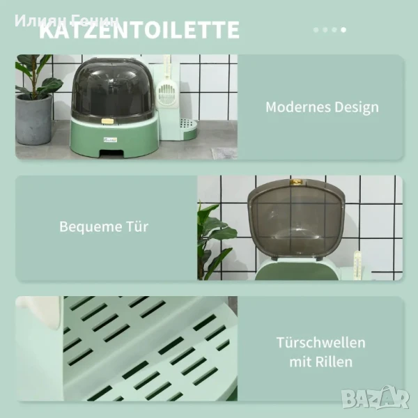 Модерен дизайн: Нашата тоалетна с капак се отличава с елегантен, модерен дизайн, който се съчетава добре с различни интериори. Тази красиво проектирана тоалетна улеснява съвместния живот за вас и вашата котка.