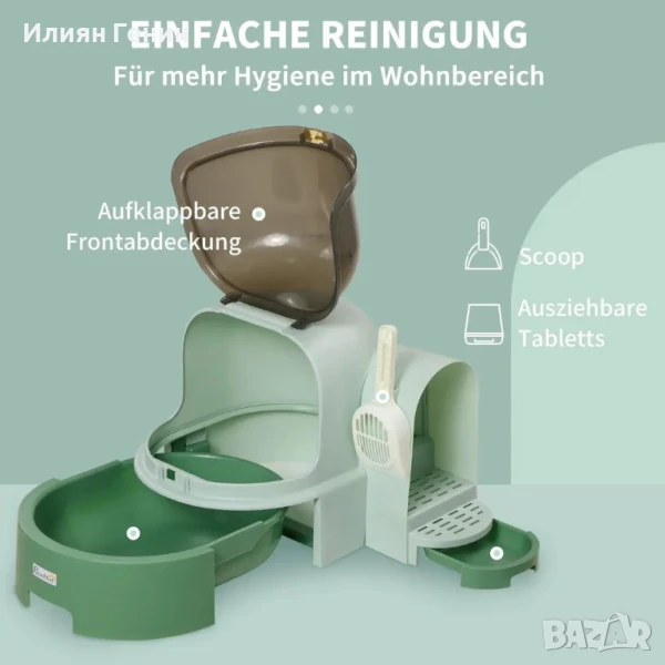 Котешка тоалетна PawHut, 2 издърпващи се тави, 1 лъжичка, тавичка за тоалетна, подвижен капак, зелена + черна - 100.00лв.