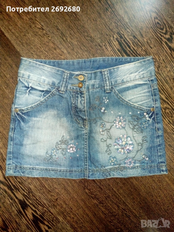 Дамска дънкова къса поличка размер S-ка, носена е броени пъти, не е различима от нова, цена - 25лв.