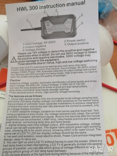 Подходящ за тестване на всякакви LED, COB, ленти, лампи, подсветки на телевизори и др.