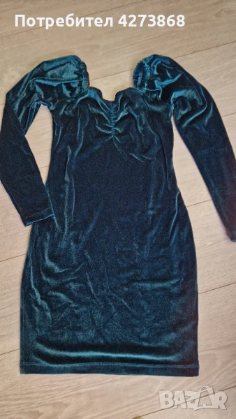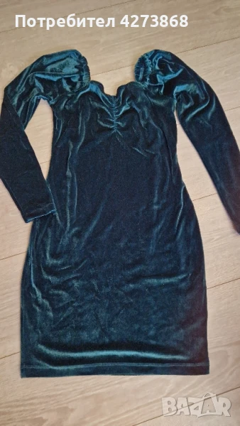 Рокля от тъмно ,зелено кадифе,за 10,11год,xxs размер,с буфан ръкави,вталена,стилна