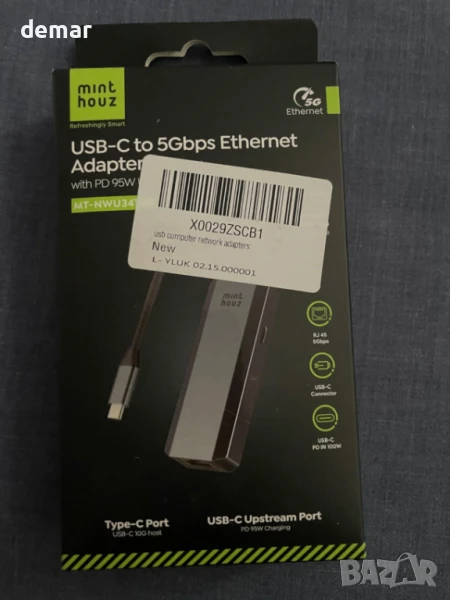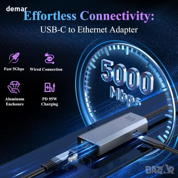 Minthouz USB C към Ethernet адаптер, 5G кабелен мрежов адаптер
