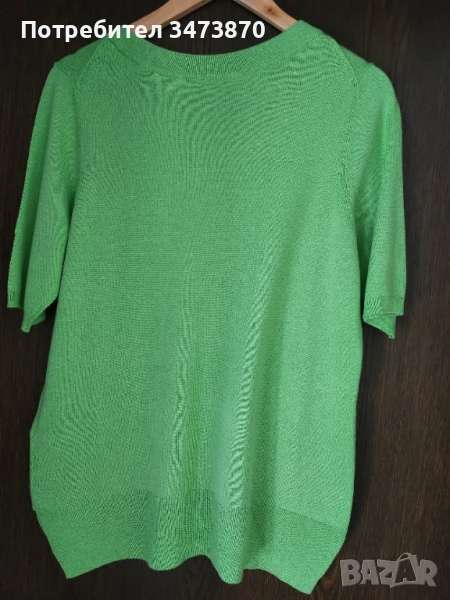 Нова зелена дамска блуза. Приятна материя- памук/ вискоза. Стои свободно и елегантно. Дължина 66 см.