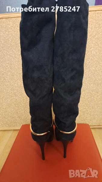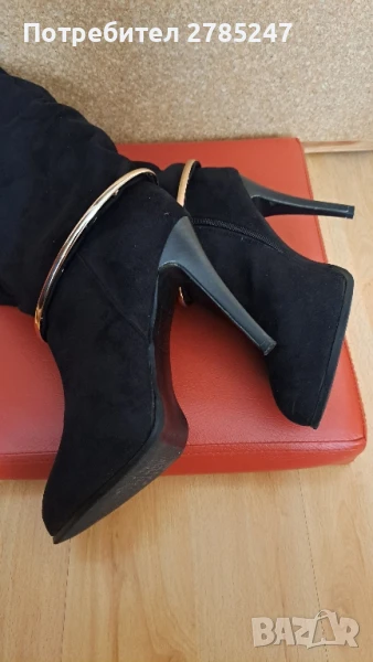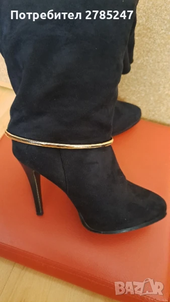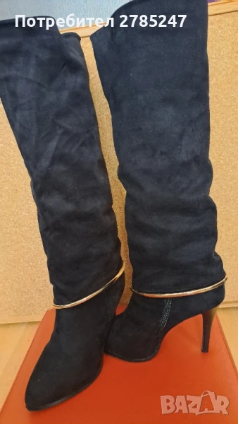 Дамски ботуши на ток,велур/еко/,височина на ток -12см,височина на ботуш-40см,може да се носят и набрани,без никакви забележки ‼️