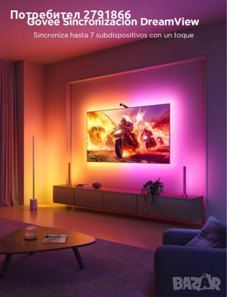 - Подобрена технология Govee Envisual: Подобреният чип осигурява по-добра производителност с функция за корекция на „рибешко око“, разширявайки ефективния диапазон, за да осигури по-точно съвпадение на цветовете по краищата.