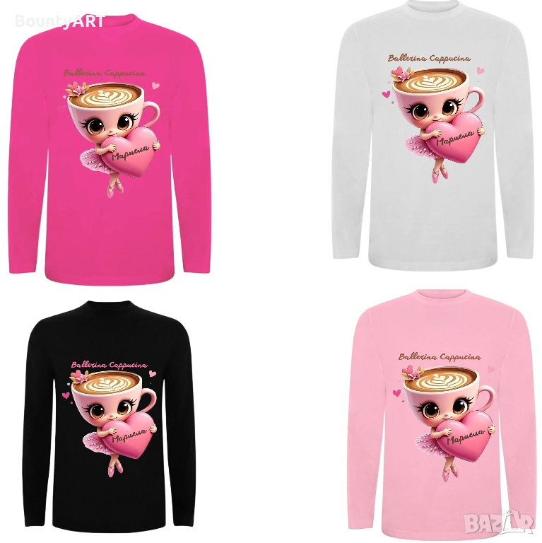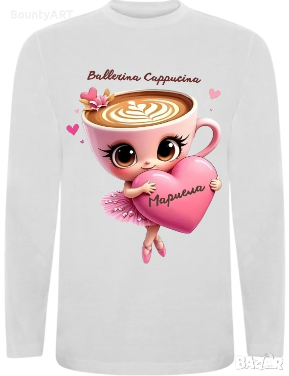 Персонализирана тениска или блуза с дълъг ръкав балерина Капучина с името на детето