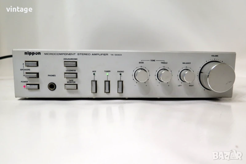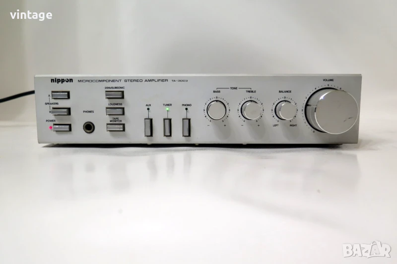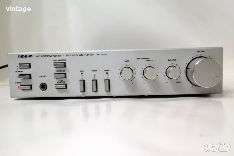 Транзисторен стерео усилвател, отличен технически, много добър външен вид. Корекции: bass, treble, loudness, subsonic filter. Изходните и и входни конектори са по DIN стандарта. Много добър саунд. Приложените снимки и видео са реални!