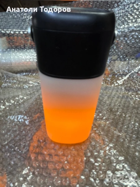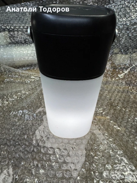 Тонколоната е внос от Австрие в отлично здраве е батерията има и вградена лампа бяла и жълта мърдъща имитира огън