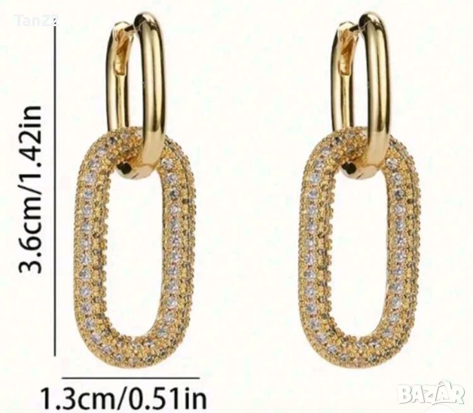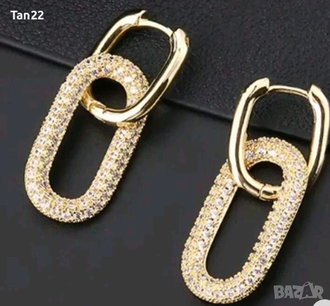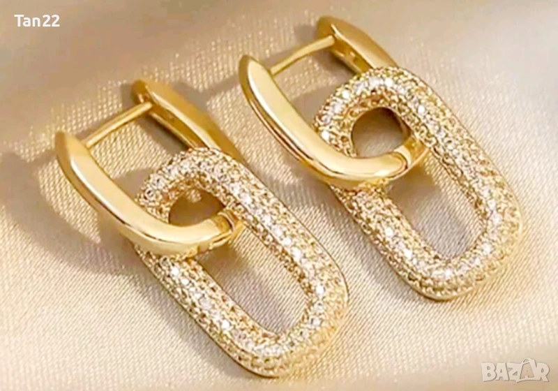 Страхотни златисти обици с камъни, английско закопчаване отзад, висящи и много нежни