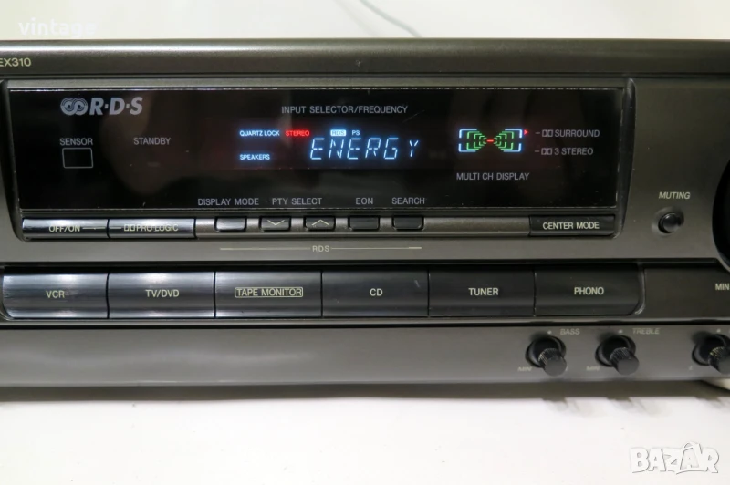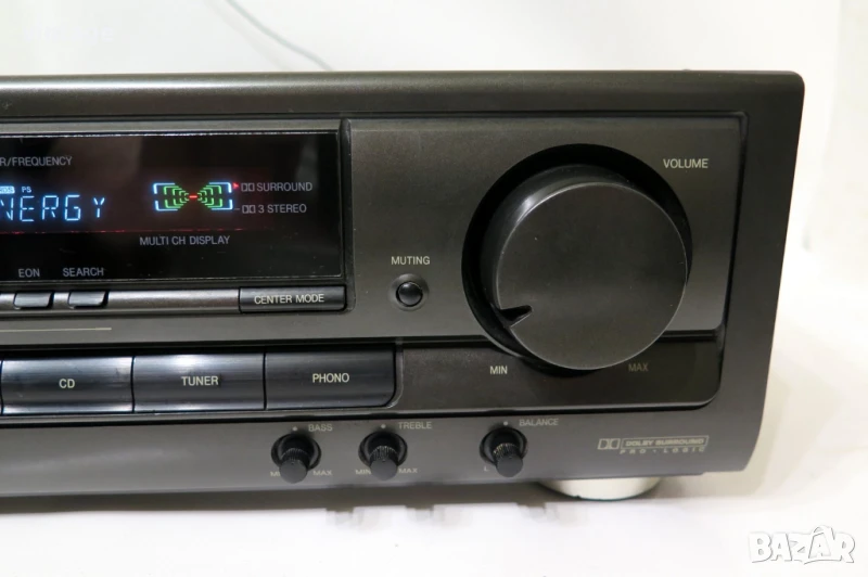 Стерео ресийвър, отличен технически, много добър външен вид. Корекции: bass, treble. Dolby Surround ProLogic,Dolby 3 Stereo,DSPL with Times 4 concept,RDS,Level Generator/Test Mode,Mid channel mode (Wide/Normal/Phantom),2 Connectors Video,4 connections audio,Synthesizer quartz tuner,30 memory locations/direct access.Дистанционно управление не е налично. Приложените снимки и видео са реални!