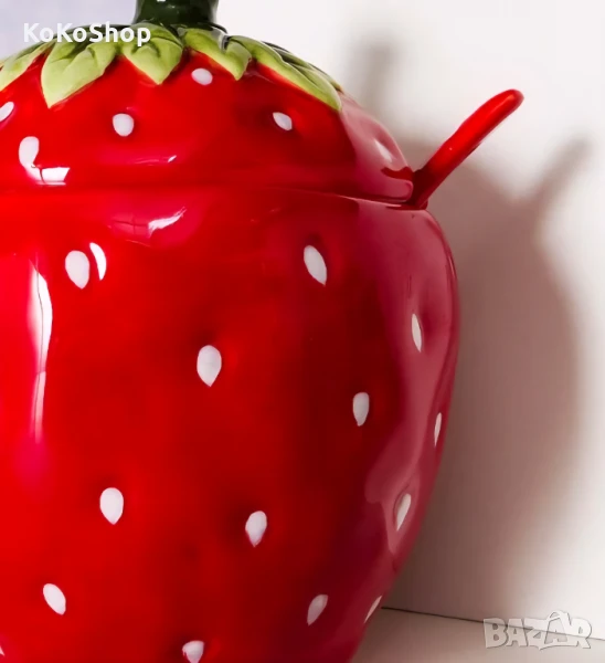Керамична захарница с лъжичка,с форма на ягода.
