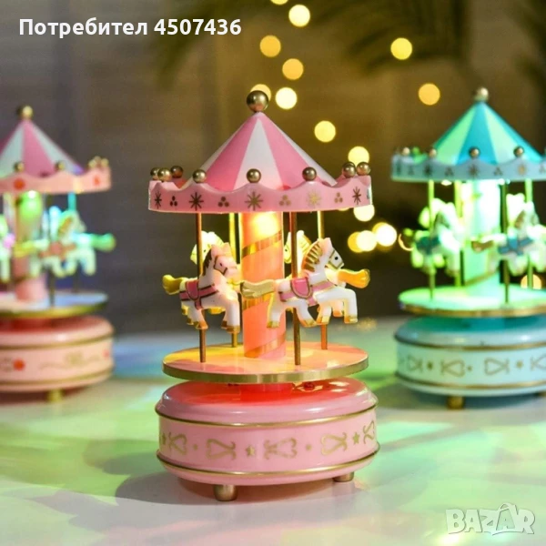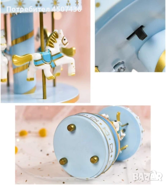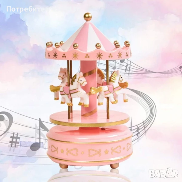Луксозна музикална кутия с въртележка 4 коня → Обява 50840762
