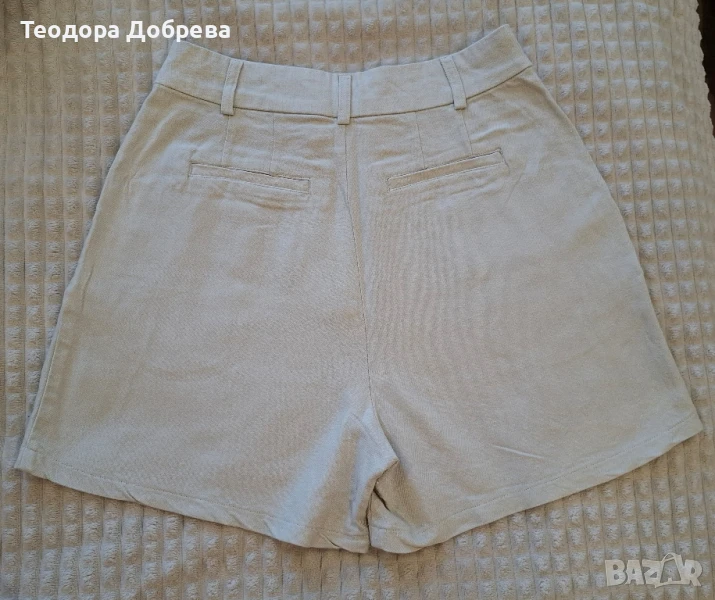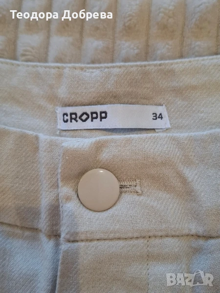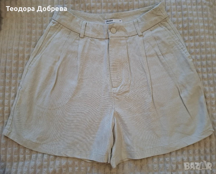 Бежави къси панталони с ръб от CROPP. Материята е лен и са изключително леки за лятото. Подходящи са и за по-официални събития. Никога не са носени. Размерът е 34. При въпроси се свържете с мен.