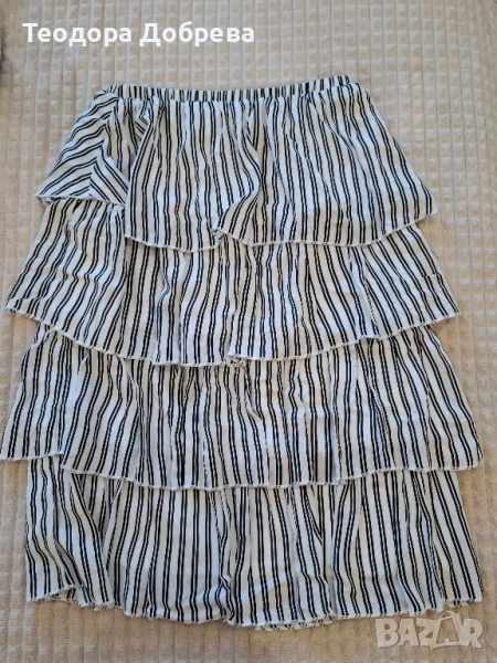 Пола на райета от Sinsay. Дължината е под коляното. Подходяща е и за човек, който носи S размер. Перфектна е за лятото. Никога не е носена. Ако имате въпроси, се свържете с мен.