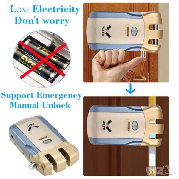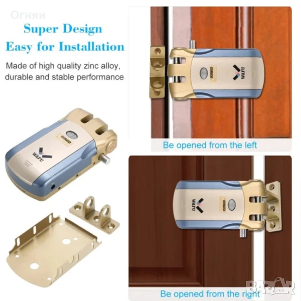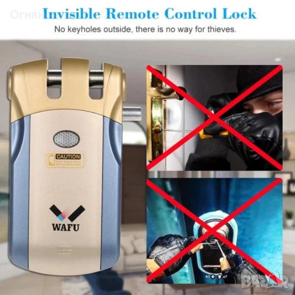 Невидима секюрити брава с четири безжични дистанционни управления в комплекта. Предимството на това заключващо устройсто е, че целият механизъм е напълно невидим отвън и се отваря с помощта на дистанционно с огромен брой комбинации и кодове.