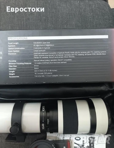 Супер телеобектив 420-800 мм от BENOISON е оборудван с многослойни оптични компоненти с ултрависока резолюция и корпус от алуминиева сплав. Добър избор за тези, които снимат дивата природа или луната като хоби, например.