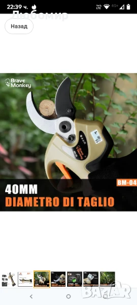 BraveMonkey Безжични ножици за клони 40 мм, Професионални електрически ножици за клони с