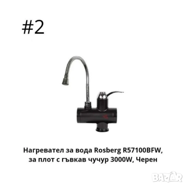 Вариант 1: (Хоризонтален монтаж за стена)Мощност: 220-240V~, 50/60Hz, 3000-3600WТип монтаж: Хоризонтален, за стенаТемпературен диапазон: 30-60 °CВодоустойчивост: IPX4Регулиране на температурата: ДаЦвят: ЧеренЧучур: Гъвкав чучурПредназначение: Кухня, баня, вила, гаражВариант 2: (Вертикален монтаж за плот)Мощност: 220-240V~, 50/60Hz, 3000-3600WТип монтаж: Вертикален, за плотТемпературен диапазон: 30-60 °CВодоустойчивост: IPX4Регулиране на температурата: ДаЦвят: ЧеренЧучур: Гъвкав чучурПредназначение: Кухня, баня, вила, гаражНагревателите за вода са съвършено решение за бързо и ефективно осигуряване на топла вода, съчетавайки стилен дизайн с функционалност и лесен монтаж.Гаранция: 24 месеца.Доставка с Еконт до 4 работни дни