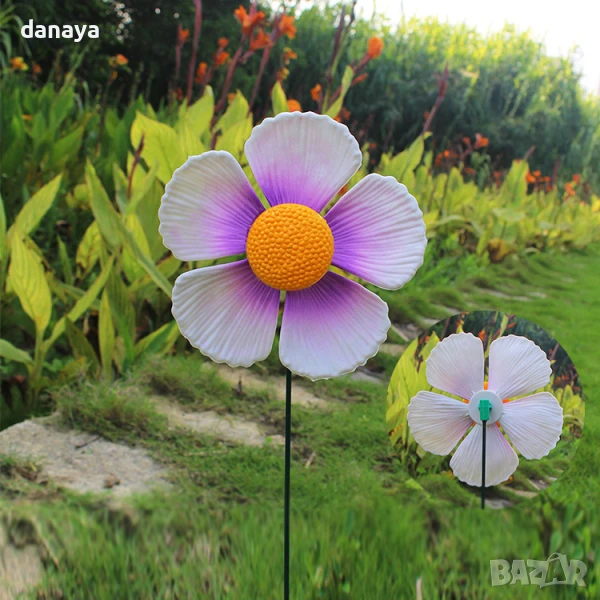 Добавете цвят, настроение и движение към вашата градина с тази декоративна градинска въртележка във формата на цвете! Подходяща както за градини, така и за балкони или тераси, тя е чудесен акцент, който се върти при всеки полъх на вятъра и внася усещане за живот и игривост.