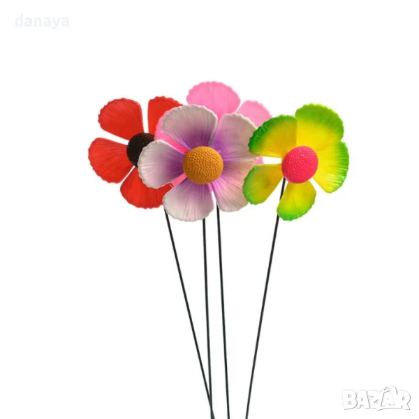 Изработена от устойчиви материали – цветето е от здрава пластмаса, а колчето – от метал, което осигурява стабилност и дълготрайност.