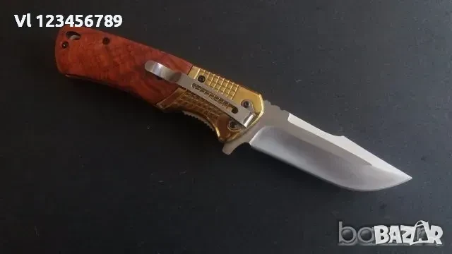 със заключване тип liner lock. Острието е с двустранно равномерно скосяване, на което се дължи и много доброто заточване. Дръжката е с метална основа, като чирените са съчетание от дървени и метални елементи, което допринася за красивия дизайн. Формата на дръжката допринася за удобния захват и комфортната работа. Добавен е метален надежден клипс. Острието е много добре центрирано и е с добавен гард, предпазващ ръката при работа. DA96 е нож, подходящ както за по-тежки и груби дейности, така и за по-фини и прецизни задачи. Моделът е удачен избор за подарък.