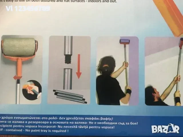 Комплект валяк/с контейнер/ за да боядисване + Кана за наливане и смесване. +Удължител/система от 3 тръби за удължаване на дръжката/
