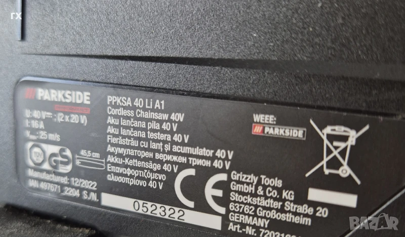 Верижен трион Parkside Performance PPKSA 40-Li A1, 40V, 38 cm (без батерия и зарядно)