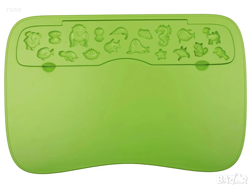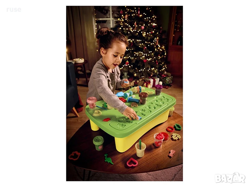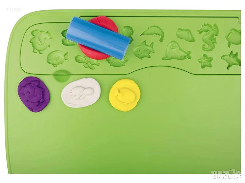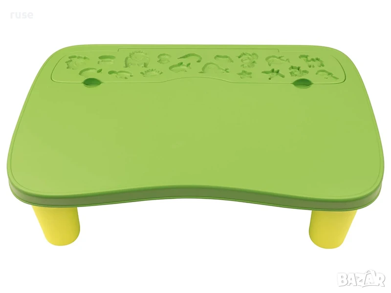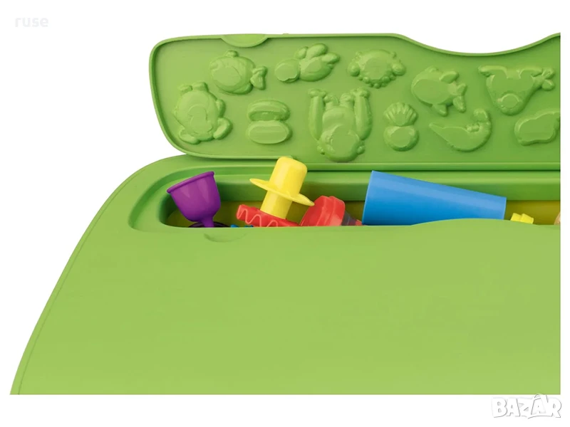 - Зелена маса за игра с място за съхранение на пластилин и аксесоари