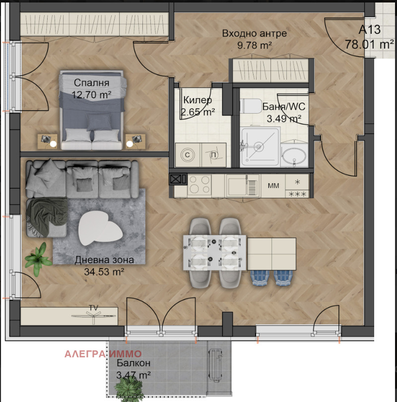 Просторна дневна - 33,82 кв.м.