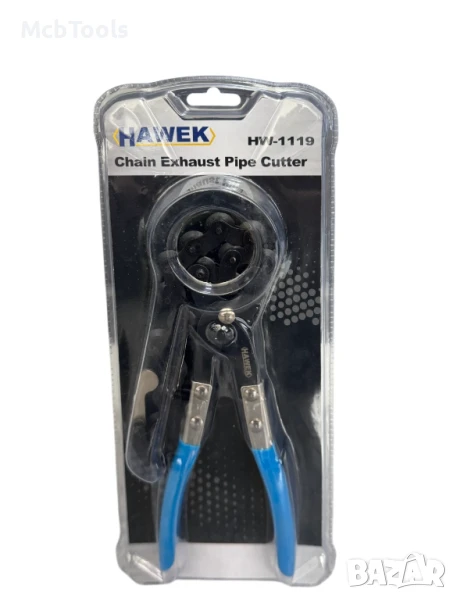 Специално конструиран да може да се ползва и на малка работна площ чрез движения напред и назад. Верига с дължина 350 мм и 15 стоманени режещи диска с диаметър 19 мм. За ауспухови тръби с максимален диаметър 83 мм. Препоръчително е да се използва със специална смазваща течност за по-висока ефективност и по-дълъг живот. Да не се използва за ауспухови тръби от неръждаема стомана. Пластмасово покритие на дръжките.