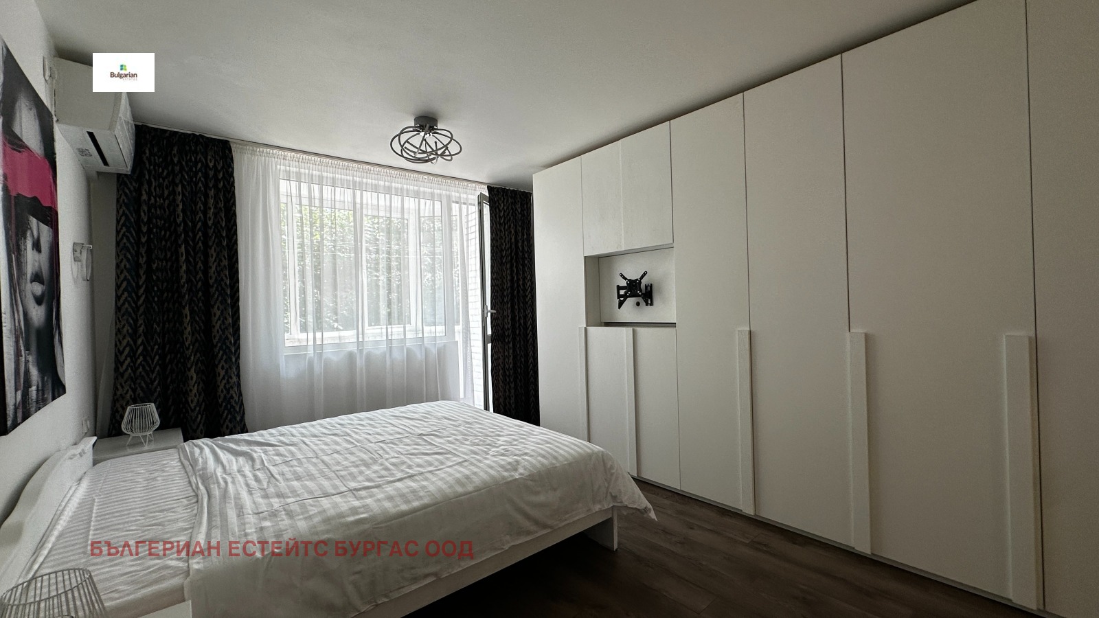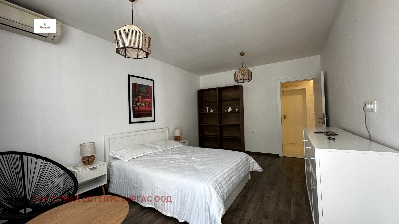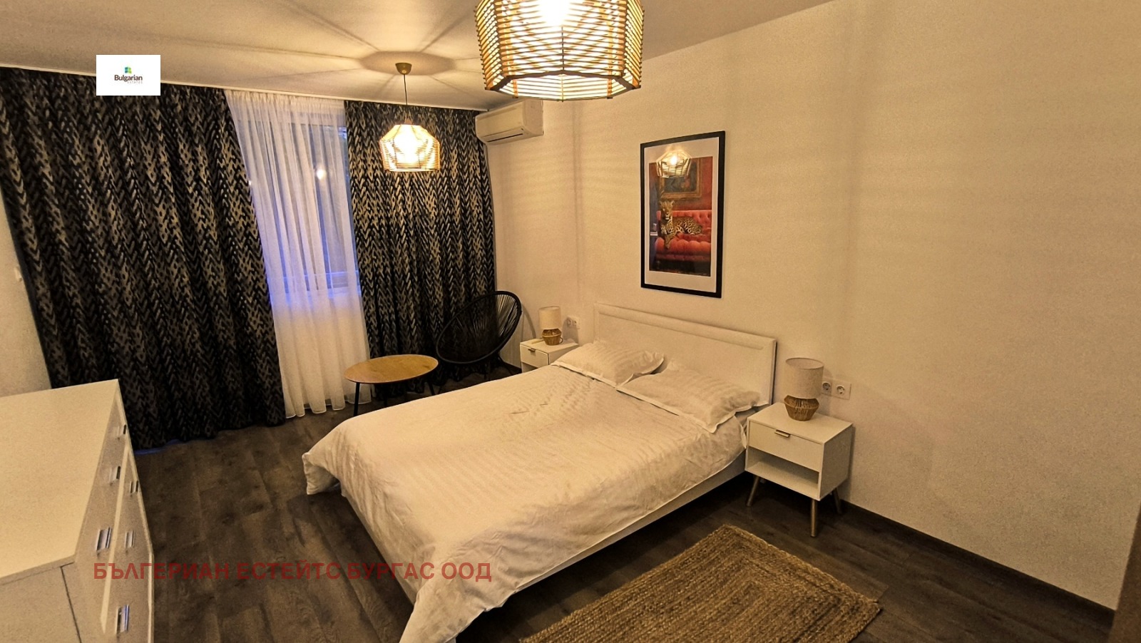 Апартамент с две спални и отлично местоположение в близост до плаж Хармани. Апартаментът е тристаен с чиста жилищна площ 90 кв.м, разпределена между входно антре, голяма всекидневна с кухня, две спални, баня с тоалетна, втора тоалетна и две тераси. Жилището е разположено на първи жилищен етаж в триетажна тухлена сграда на улица Републиканска, в близост до магазини, ресторанти и други удобства. Продава се напълно обзаведен и оборудван с техника.Жилището разполага и с мазе/склад в сутерена.