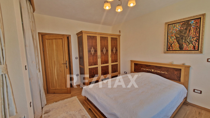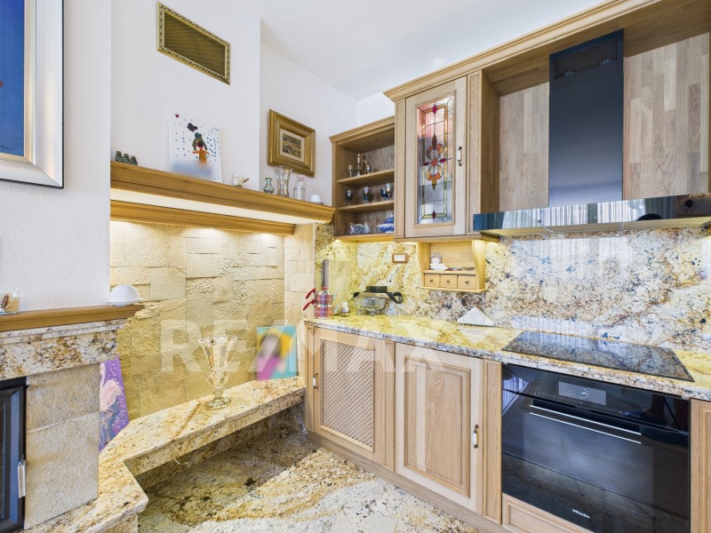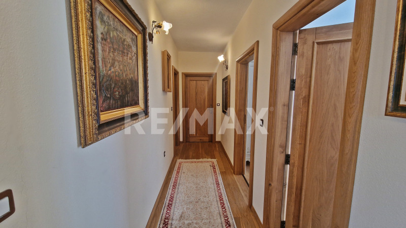Състояние - безупречно! Подова настилка Усурийски дъб; Дограма масивен Славонски дъб с алуминиева вложка и електрически отдушници; Парно на пелети с радиатори във всяко помещение; Радиаторите са Бохемия, като големината на всеки е индивидуално преценена за топлоотдаване спрямо кубатурата на отделните помещения; Мебелите също за без компромис, изработени са по индивидуален проект от масивен дъб;