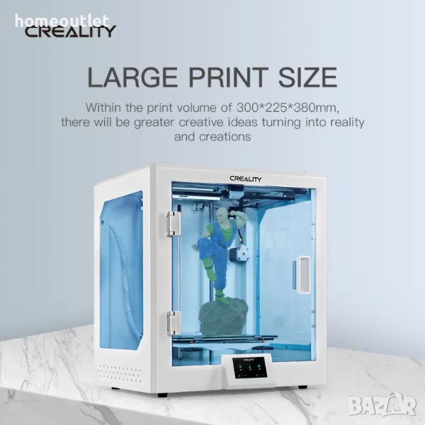 Добавени са прозрачни акрилни плочи отпред, отдясно и отляво, което е удобно за наблюдение на печата в реално време и полезно за поддържане на температурата в зоната за печат.