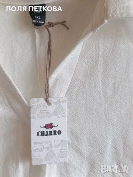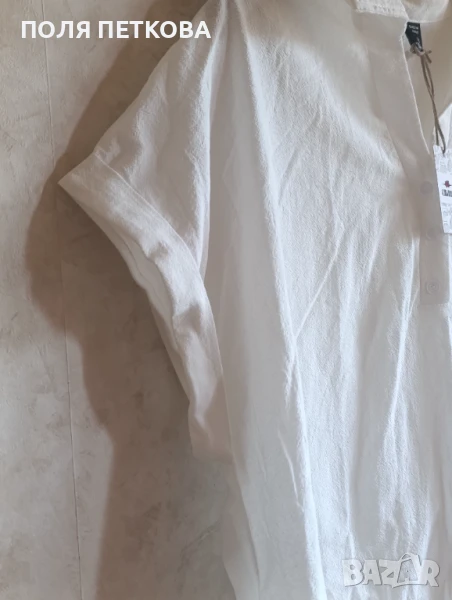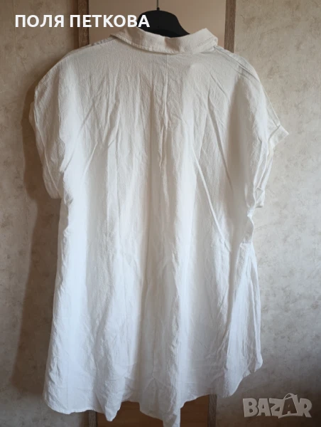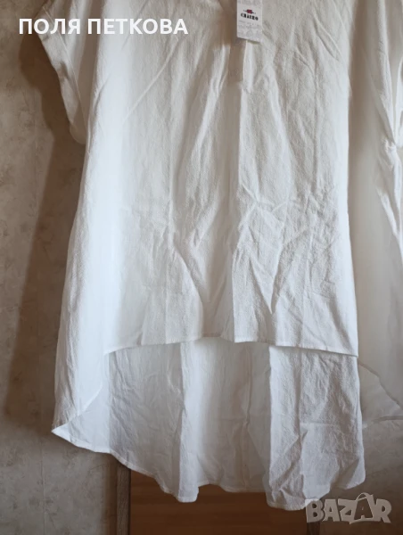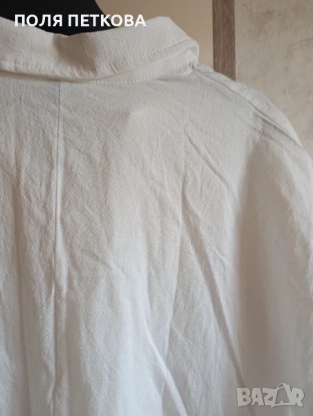 Бяла нова туника - риза без еластан не прозира размер 3xl гръдна 135 в ханша се разширява до 165 см отпред дължина 75 см отзад дължина 100 см може да се носи и в ежедневието и на плажа като риза тип парео
