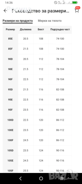 Дамски сутиен размер 90 E F голям размер → Обява 50848679