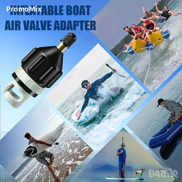 Адаптера е универсален за различни надуваеми продукти и незаменим аксесоар към вашия набор от принадлежности - за всяко водно приключение.