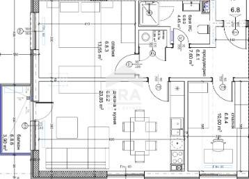 ЕРА Вива продава тристаен апартамент в новострояща се сграда в кв. Кайсиева Градина, гр. Варна. Имотът е със застроена площ от 73.95 кв.м. /88.53 кв.м. с общите части/ и е разположен на пети от общо дванадесет етажа. Състои се от входно антре /7.6 кв.м./, слънчева дневна с кухня и трапезария /24 кв.м./, две спални /10 и 13.5 кв.м./, баня с тоалетна /4.45 кв.м./ и балкон /3.9 кв.м./. Жилището ще бъде издадено по БДС - на шпакловка и замазка, с поставена ПВЦ дограма и блиндирана входна врата.