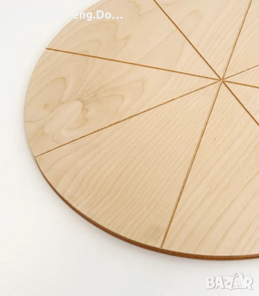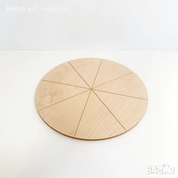 Дъската е с класически кръгъл дизайн, оразмерена за 8 равномерни парчета пица.