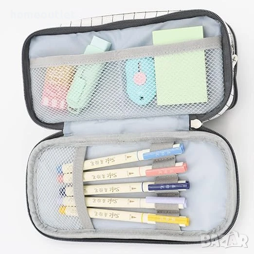 Освен като несесер за съхранение на канцеларски и ученически материали, може да се използва като козметична чанта за пътуване, за гримове, дребни инструменти, за мобилен телефон и др., за да отговори на всички ваши основни ежедневни нужди.
