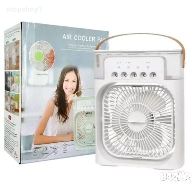 Фина мъгла и хладен въздух: Този преносим охладител за въздух разпръсква фина мъгла с 5 отвора за мъгла, охлаждайки въздуха за кратко време. Можете да добавите вода и кубчета лед в резервоара за вода, за да направите мъглата по-ефективна и да се насладите на хладния въздух.