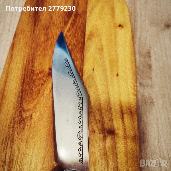 Стара ръчно изработена Сойка дръжка от Еленов рог. С орнаменти по Острието, което е 13.5 см., обща дължина в размер на 30 см. Остра и удобна. Заточена от майстора. Вижте другата ми обяви за сойки и ножове от колекция.